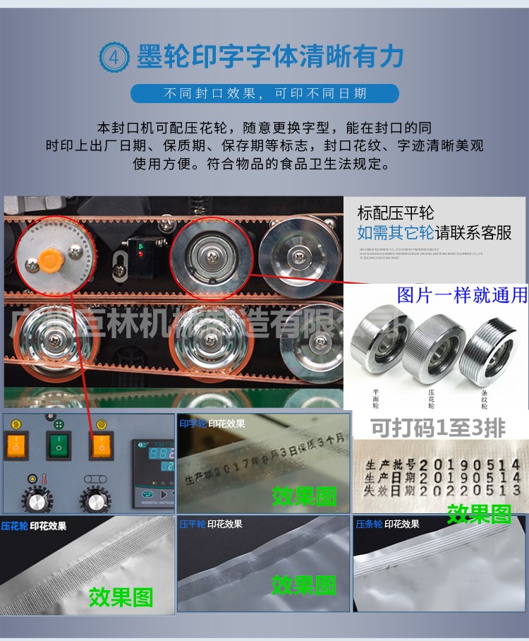 本機(jī)是新一代集印碼,封口,連續(xù)輸送為一體的自動薄膜封口機(jī),具有印字清晰、顔色可選、即印即干、換字方便等特點(diǎn)。